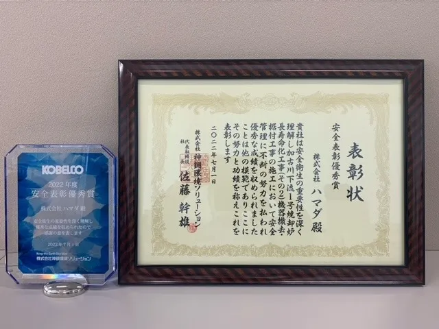 お客様から安全表彰優秀賞をいただきました。